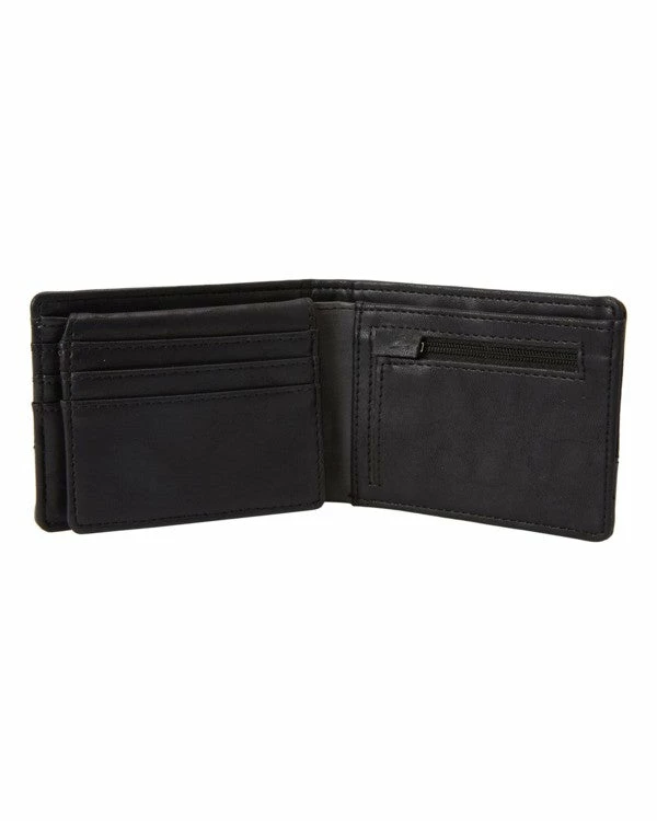 The Billabong Dimension Bi-Fold Wallet has been designed with a sustainable because is made from premium vegan leather in a bi-fold construction.Â