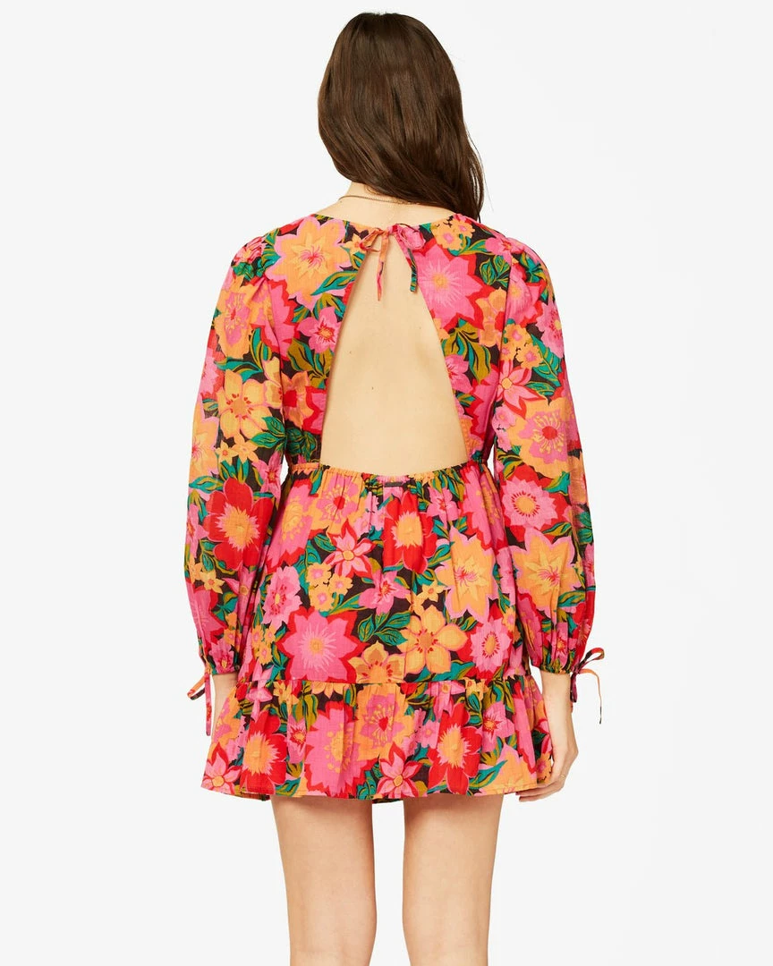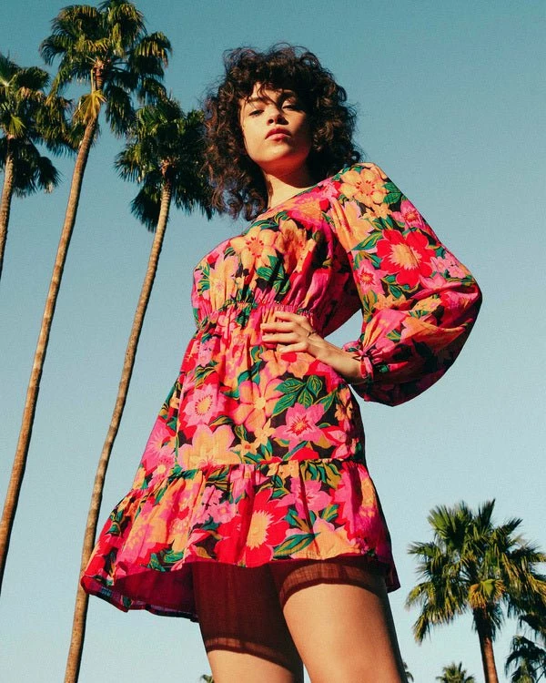 The Heaven Sent Dress is like a blessing from the style gods. This stunning mini features Fit & Flare styling with hem ruffles, long blouson sleeves, and a beautiful back cut-out. The cotton slub fabric offers a lightweight texture in a bold and vibrant floral print. Your date night prayers are answered.