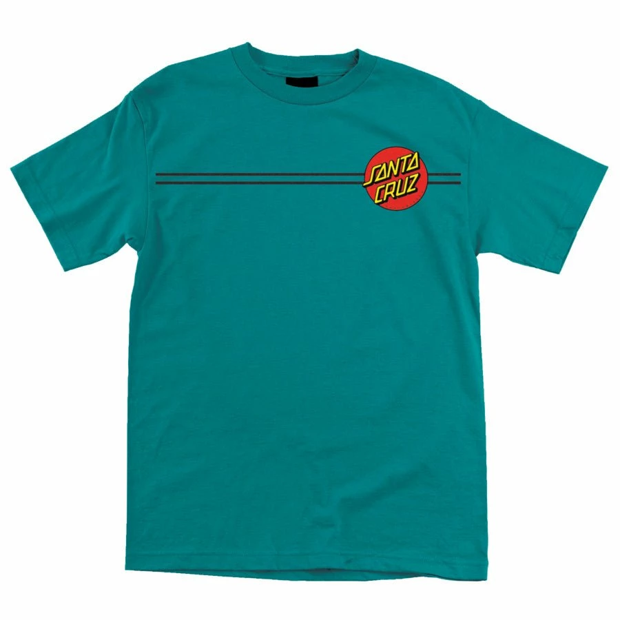 Roll up and stand out in the latest t-shirts and apparel from Santa Cruz Skateboards. The Santa Cruz Classic Dot men’s short sleeve regular fit t-shirt features large front and large back Santa Cruz Classic Dot logos printed in soft hand ink.
