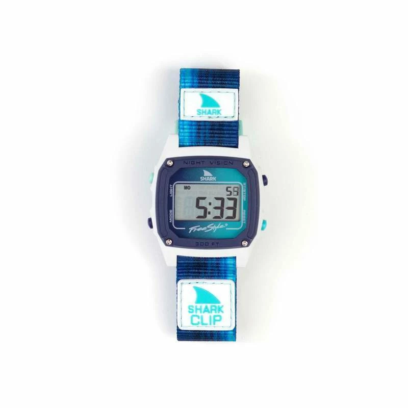 Electrifying like catching your first wave, this latest addition to the Shark Clip collection gives your wrist a jolt of energy fueled by color and funtionality. The Shark Clip is the original band system that ignited the Freestyle brand. Much like a seatbelt, just clip it in to keep your watch safe, snug and comfortable. The Shark Clip comes loaded with standard digital features like time, date, stopwatch, countdown timer, alarm and night vision backlight. Like all Shark Watches it is built to go with you on all your adventures in and out of the water. Water resistant to 100 Meters and backed by our limited lifetime warranty.