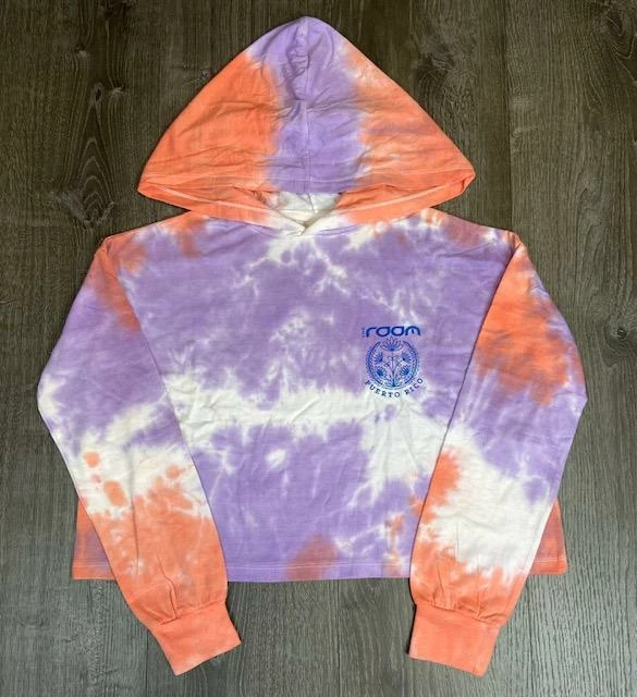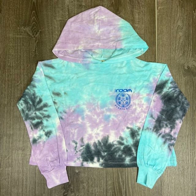 - Vibrant color, tie dye print, hoodie cropped, long sleeve