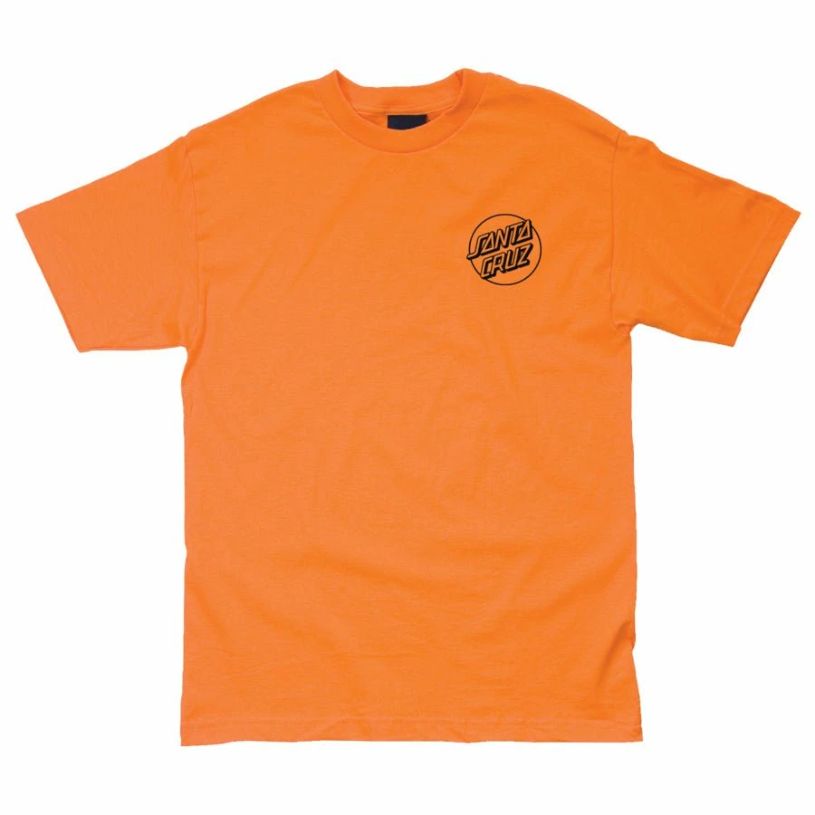 Roll up and stand out in the latest t-shirts and apparel from Santa Cruz Skateboards. The Santa Cruz Opus Dot men’s short sleeve regular fit t-shirt features small front and large back Santa Cruz Oval Dot logos printed in soft hand ink.