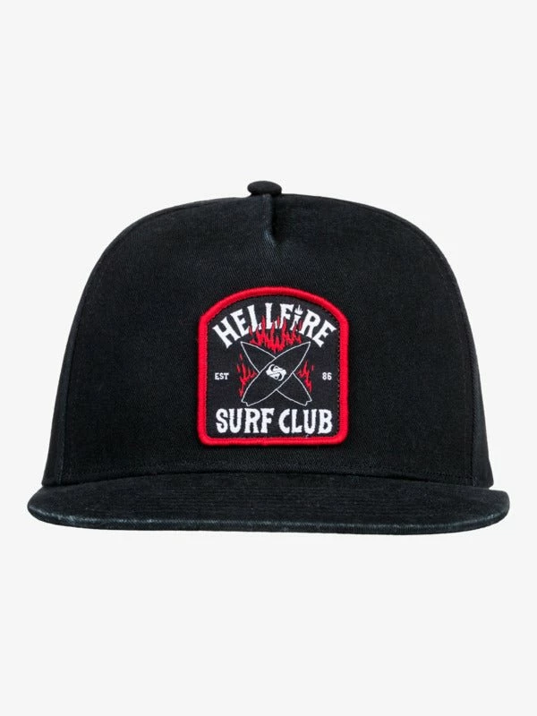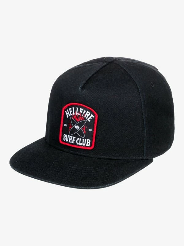 Friends don’t lie. And neither do we when we say Hellfire is the baddest surf club around. Show off your team pride with the Upside Down Strapback Hat. As part of Stranger Things’ colossal collab with Quiksilver, this limited edition cotton-twill hat features classic 5-panel construction with a flat brim. A custom high-def art patch with embroidery appears at front, with an adjustable closure at back.