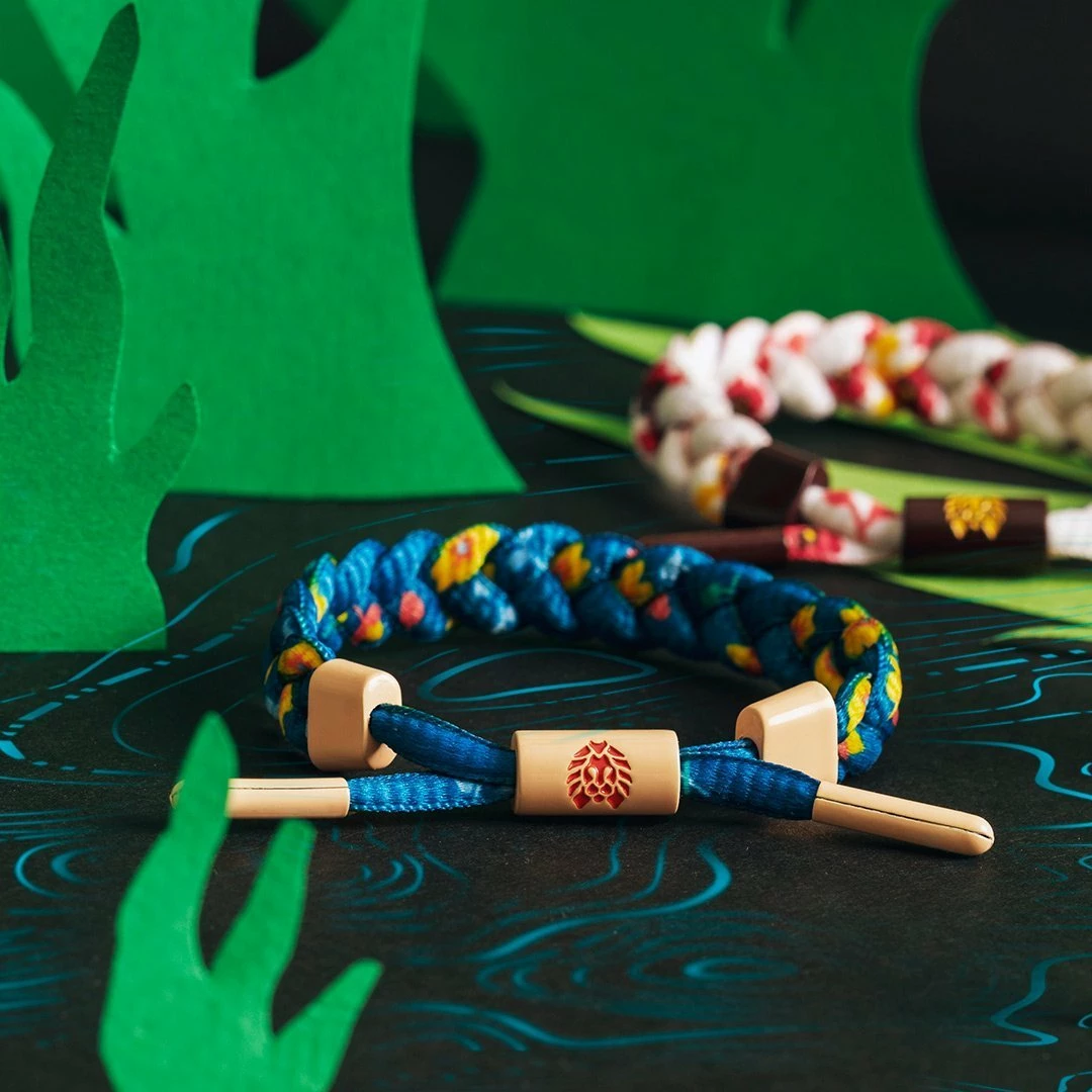 YOUR FLOWER DELIVERY HAS ARRIVED! IT’S NOT YOUR BASIC FLORAL PRINT THOUGH. THIS BRAIDED BRACELET WAS DESIGNED WITH OUR VERY OWN TROPICAL FLORAL PRINT AND FEATURES ENAMEL HARDWARE AND CONTRAST EMBLEMS.