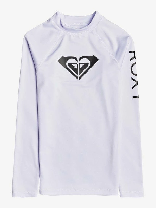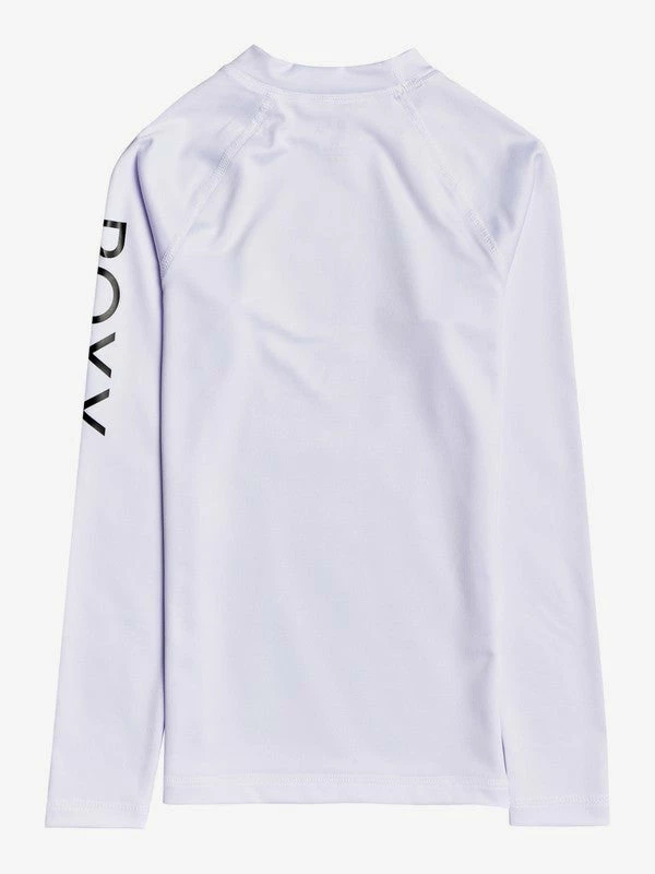 This girls ROXY rashguard offers a snug fit cut from soft and stretchy fabric provides comfortable movement and complete flexibility for action-packed surf sessions. The signature ROXY screen print on the center front and left sleeve completes the surf-ready look.