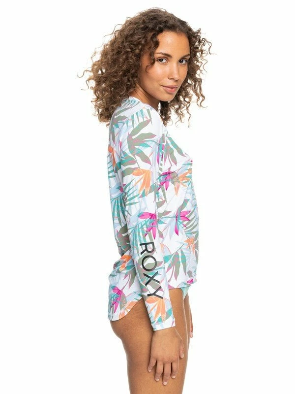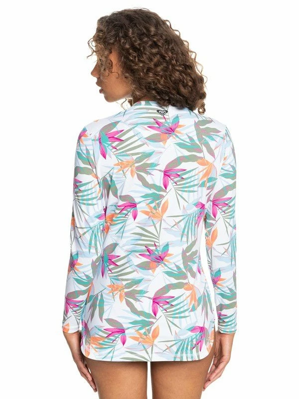 The Sea Skippin’ long sleeve rashguard of the ROXY Line Up Collection features one-of-a-kind tropical prints on recycled stretch fabric. A flexible construction keeps you shredding comfortably and stylishly.