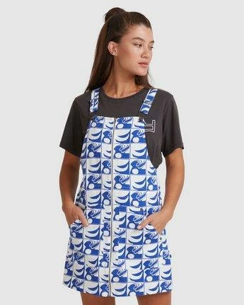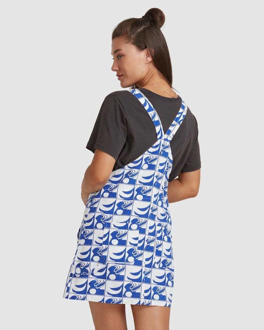 LIGHT AND CUTE WOVEN OVERALL DRESS WITH FASHIOABLE BRIGHT PRINT AND FUNCTIONAL ADJUSTABLE STRAPS.