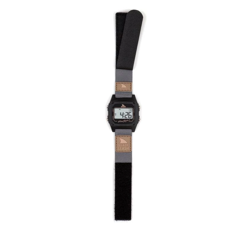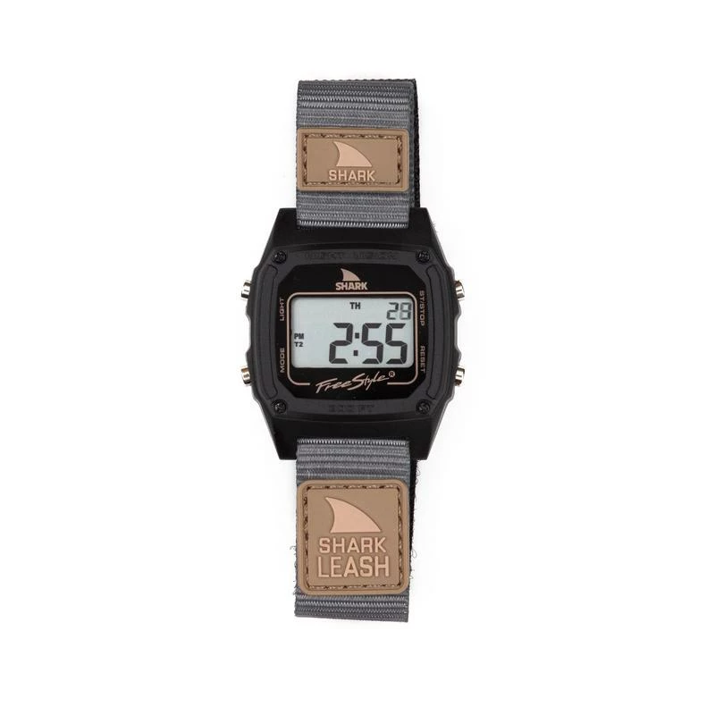 The original velcro band that launched the Freestyle watches in the 80’s is back and better than ever. The shark leash’s velcro closure system is modeled after an 80’s style surfboard leash, it comes loaded with standard digital features like: time, date, stopwatch, countdown timer, alarm and night vision backlight.