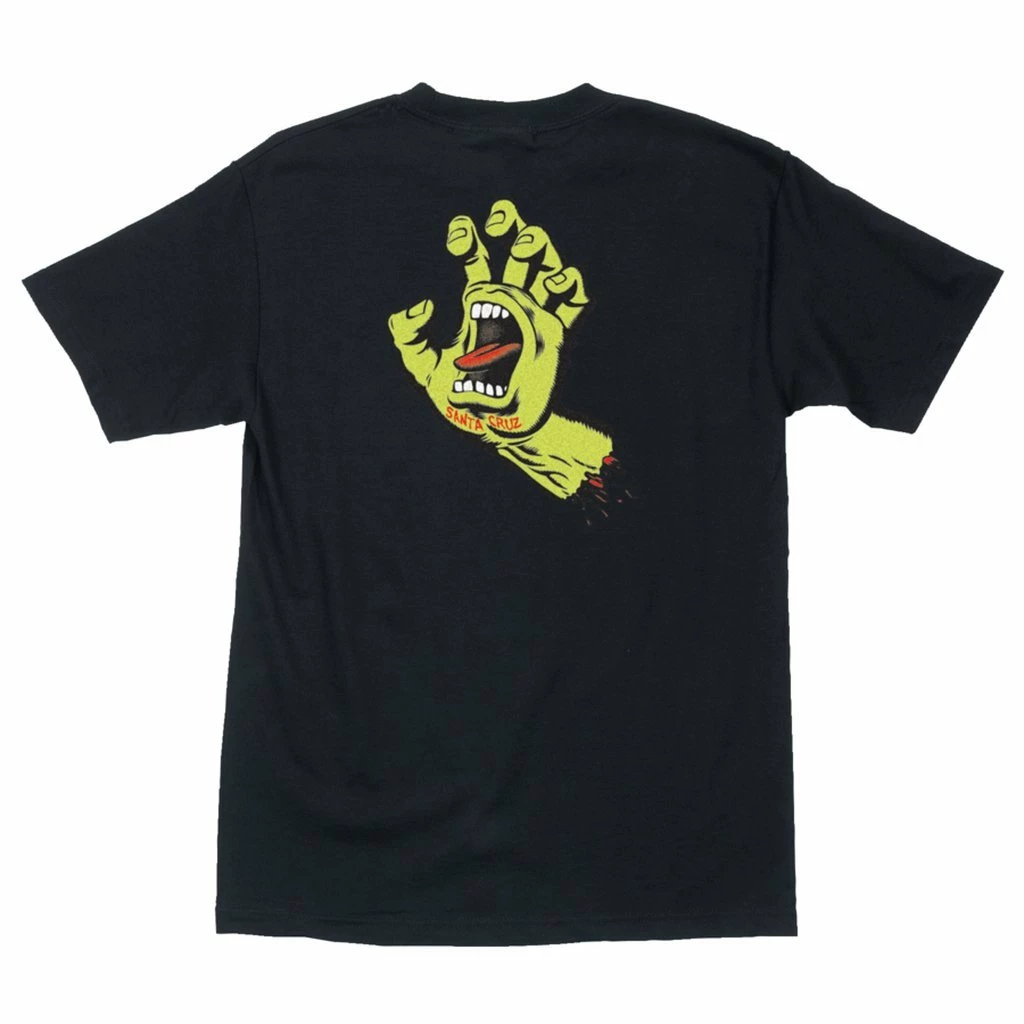 Roll up and stand out in the latest t-shirts and apparel from Santa Cruz Skateboards. The Screaming Hand men’s short-sleeve cotton t-shirt features small front and large back Santa Cruz Screaming Hand logo prints in soft hand ink.