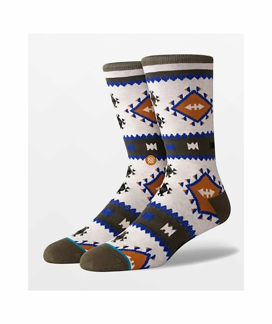 Spice up your sock drawer with the Quicken oatmeal heather crew socks from Stance. Designs inspired by southwestern decor adorn the entirety of these comfy socks, displaying natural colors such as olive green, brown and cream with pops of bright blue for some flair. Complete with reinforced heels and toes, arch support and a seamless toe closure these will easily become your new favorite socks.