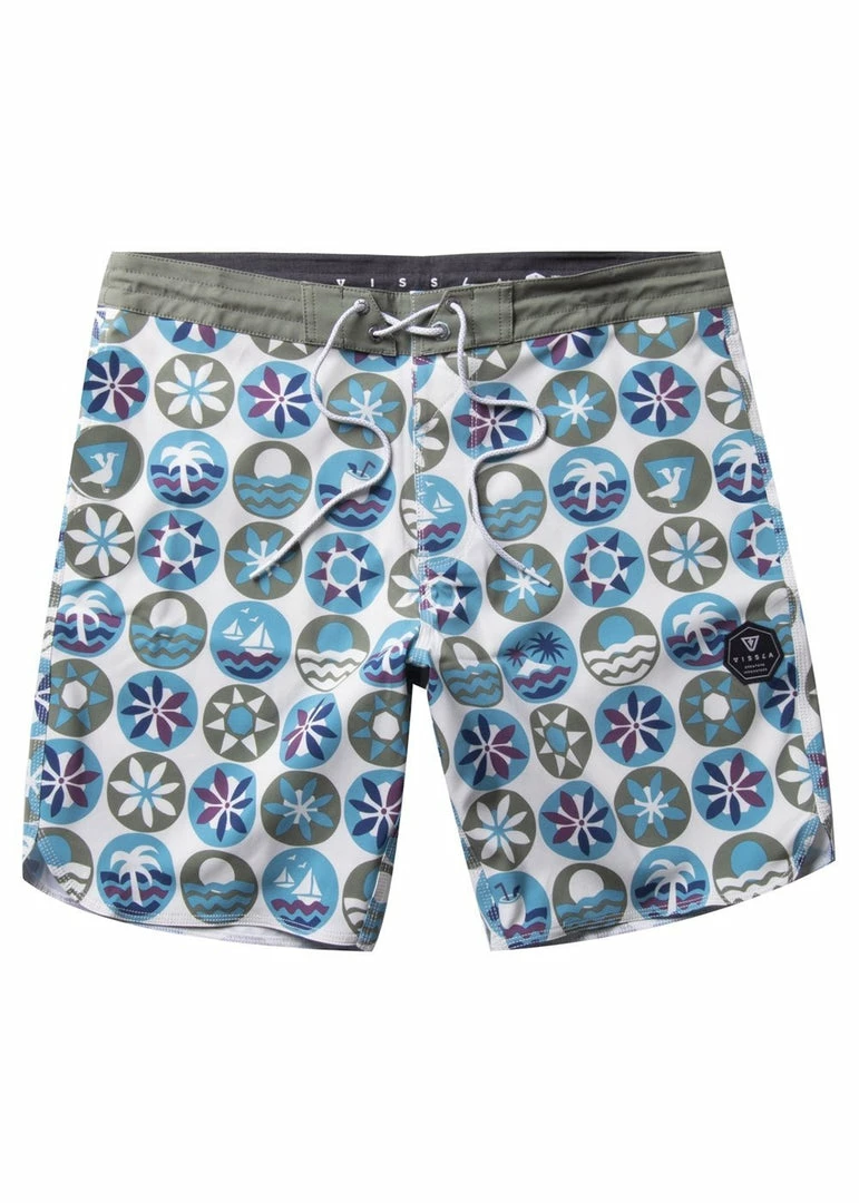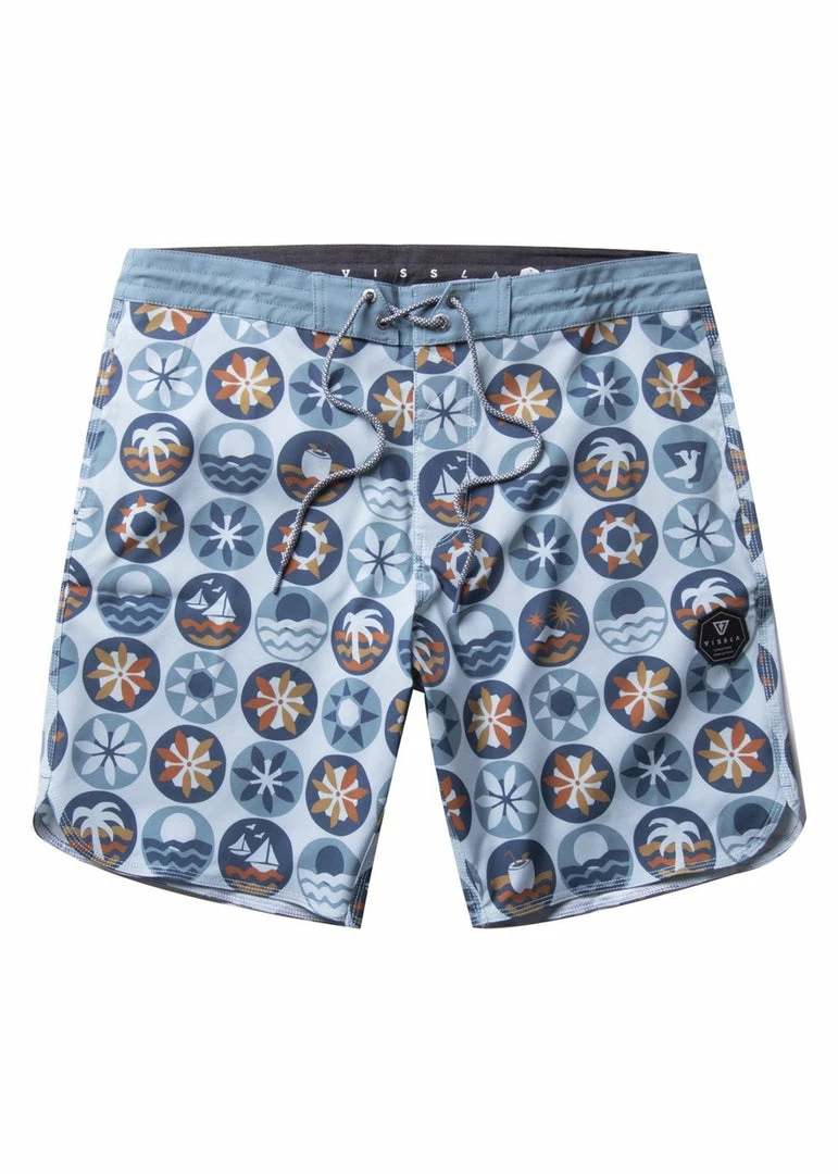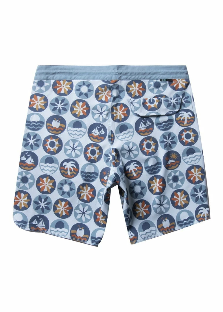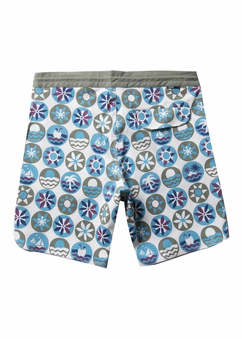 The Rounder is a premium 4-Way stretch boardshort styled with a coastal clip-art dot aesthetic.
