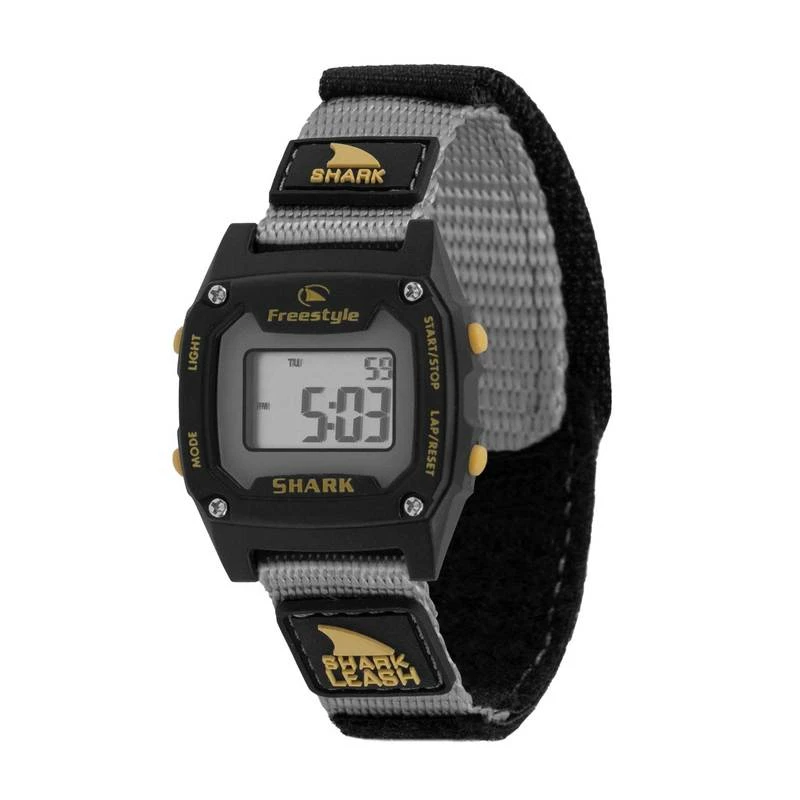 The mini-me version of the original Shark Leash, the Shark Leash Mini measures in with a 30mm case width best for fitting smaller wrists. The Shark Leash Mini is action-ready with features including alarm, dual time, countdown timer, stopwatch, and night vision backlight. Like all Freestyle Watches, the Shark Leash Mini is backed by our limited lifetime warranty and water resistant to 100 meters.