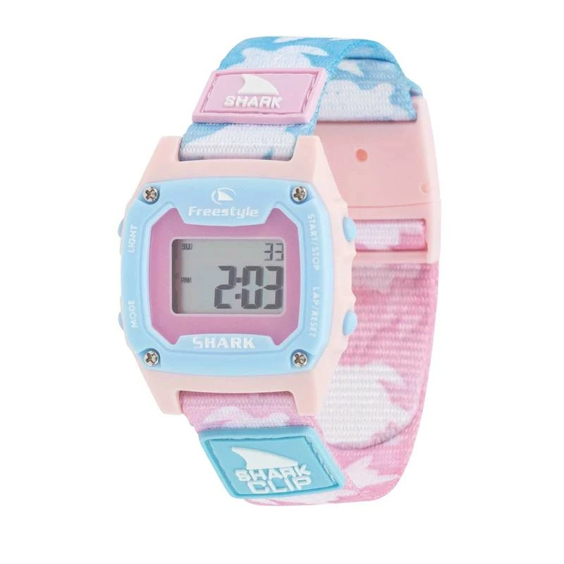 The mini-me version of the original Shark Leash, the Shark Leash Mini measures in with a 30mm case width best for fitting smaller wrists. The Shark Leash Mini is action-ready with features including alarm, dual time, countdown timer, stopwatch, and night vision backlight. Like all Freestyle Watches, the Shark Leash Mini is backed by our limited lifetime warranty and water resistant to 100 meters.