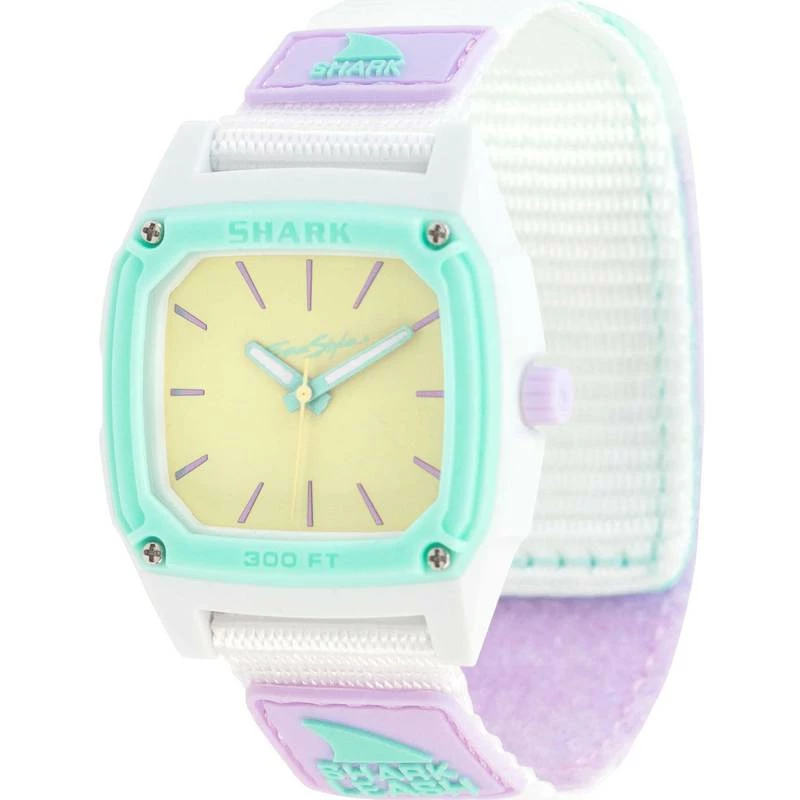 Time to Rock -D- Clock  this season with the new Freestyle Shark analog clock dial collection. Just like the classic Freestyle Shark this new series demonstrates that timing and performance go hand in hand. Water–resistant to 300 ft and features the classic Shark Leash strap that is built to go with you on all your adventures in and out of the water.
